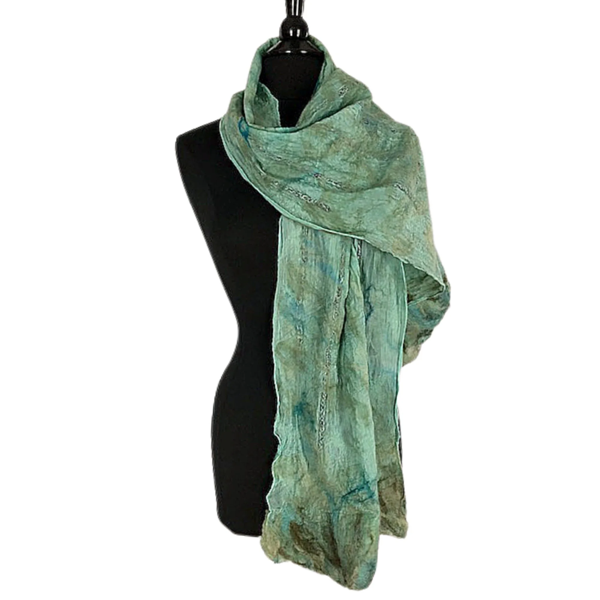 Aquamarine Felted Scarf, Nuno Felt Scarf, Nuno Wrap, Caribbean Green, Beach Bridal/Wedding Accessories, Garden Wedding, GracefulEweFiberArts
