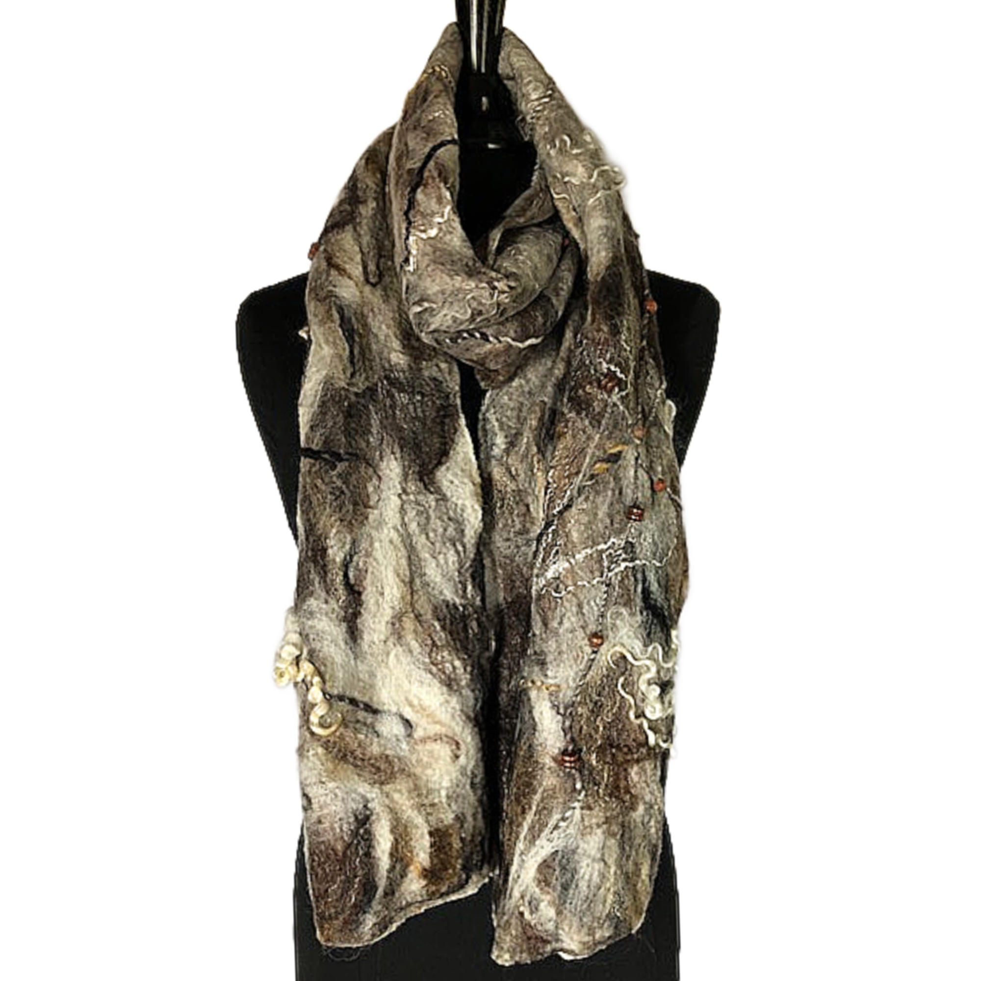 Brown & White Felted Scarf/Wrap