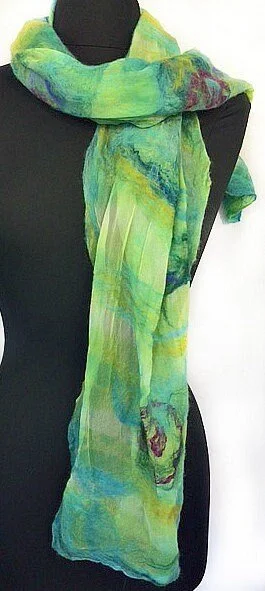 Felted Scarf, Silk Felted Scarf, Silk Wrap, Nuno Shawl, Ocean Colors, Beach Wedding Accessories, Graceful Ewe Fiber Arts: Tropical Garden