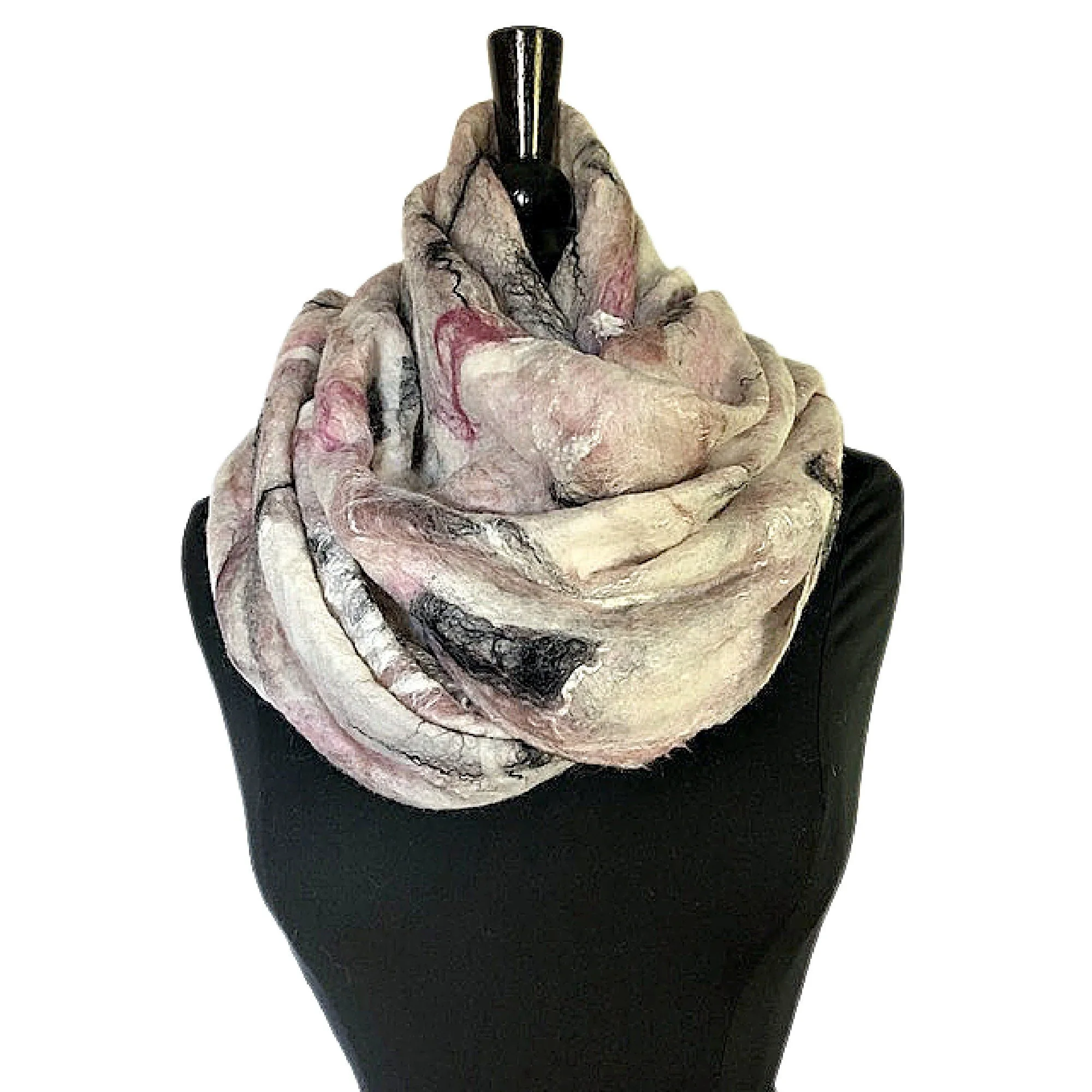 Vintage Style Felted Scarf, Nuno Wrap, Silk Felted Wrap, Felted Shawl, Wedding Bridal Wrap, Pink, White, Black Graceful Ewe Fiber Arts