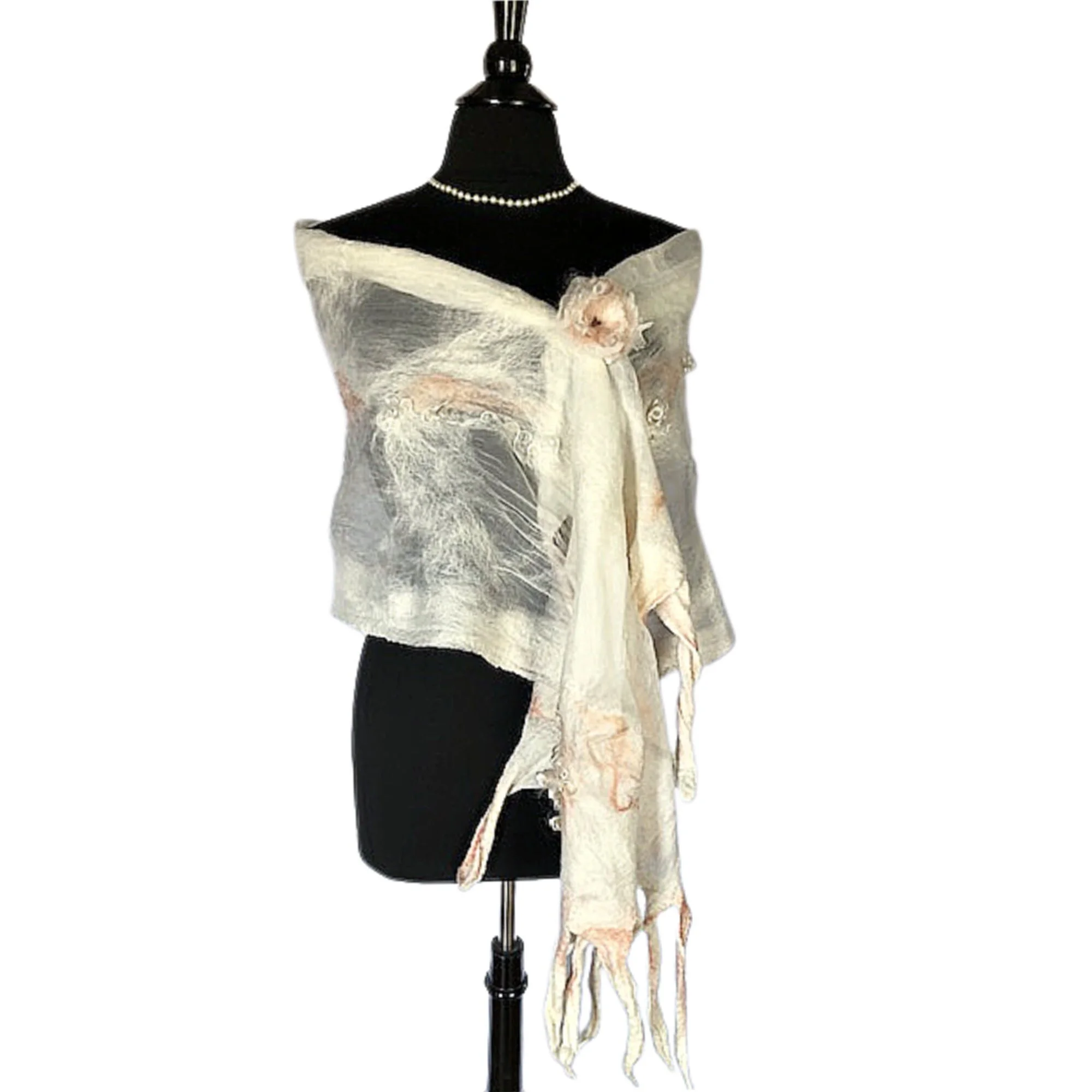 Vintage Style Ivory Felted Scarf, Nuno Wrap, Silk Felt Wrap, Felted Shawl, Rustic or Country Wedding Wrap, Bridal Wrap, GracefulEweFiberArts